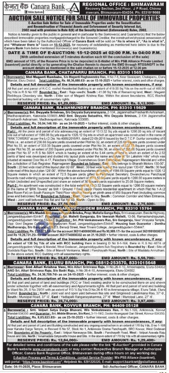 Contact KOVVUR BRANCH, PH: 94409 05128