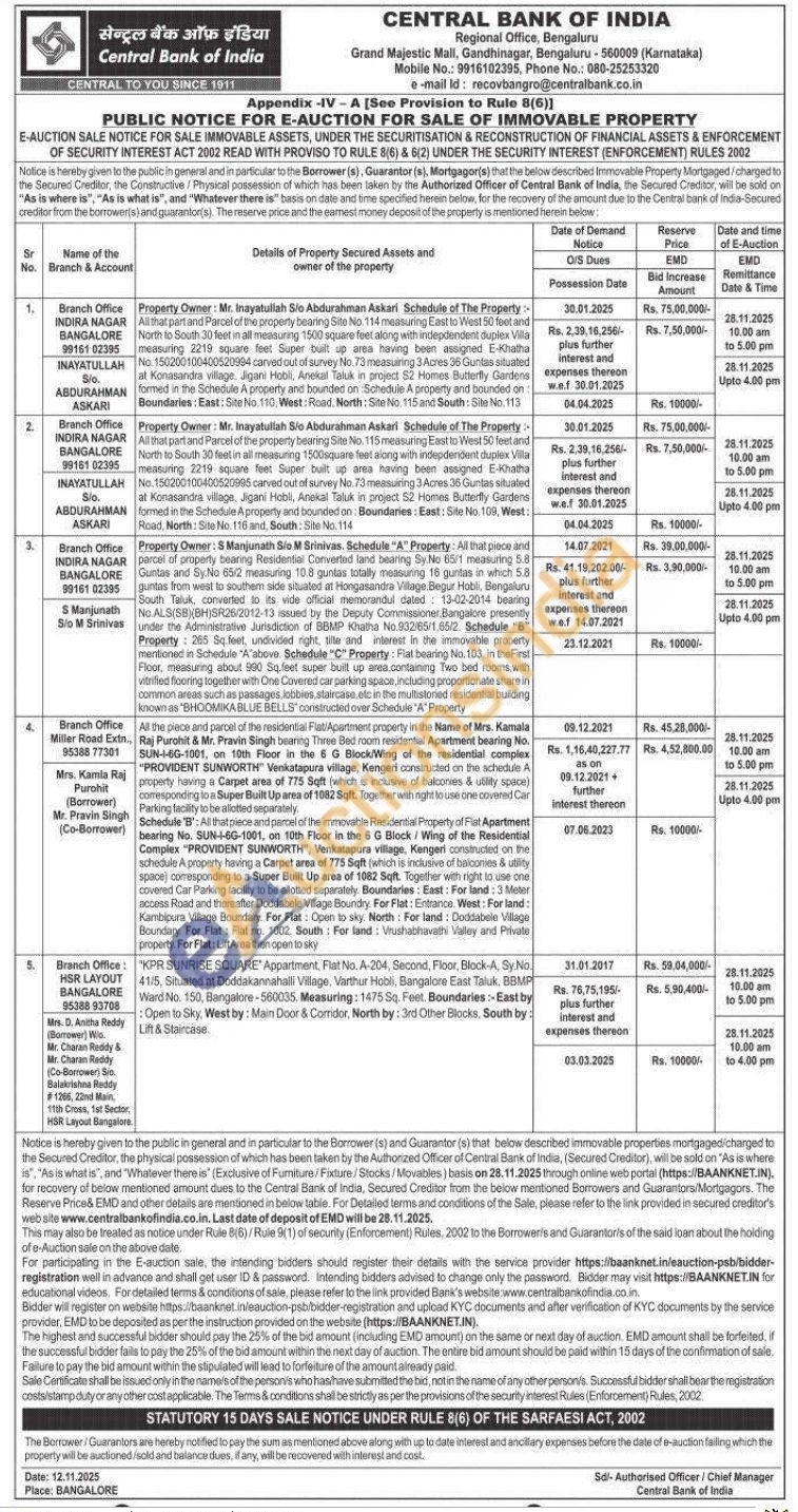 3)All that piece and parcel of property bearing Residential Converted land bearing Sy. No 65/1 measuring 5.8 Guntas and Sy.No 65/2 measuring 10.8 guntas totally measuring 16 guntas in which 5.8 guntas from west to southem side situated at Hongasandra Village. Begur Hobili, Bengaluru South Taluk, converted to its vide official memorandul dated 13-02-2014 bearing No.ALS(SB)(BH)SR26/2012-13 issued by the Deputy Commissioner, Bangalore presently under the Administrative Jurisdiction of BBMP Khatha No.932/65/1,65/2 Schedule "B" Property: 265 Sq feet, undivided right, tilte and interest in the immovable property mentioned in Schedule 'A'above. Schedule "C" Property: Flat bearing No. 103, in the First Floor, measuring about 990 Sq.feet super buill up area.containing Two bed rooms, with vitrified flooring together with One Covered car parking space, including proportionate share in common areas such as passages, lobbies.staircase,etc in the multistoried residential buliding known as "BHOOMIKA BLUE BELLS" constructed over Schedule "A" Property