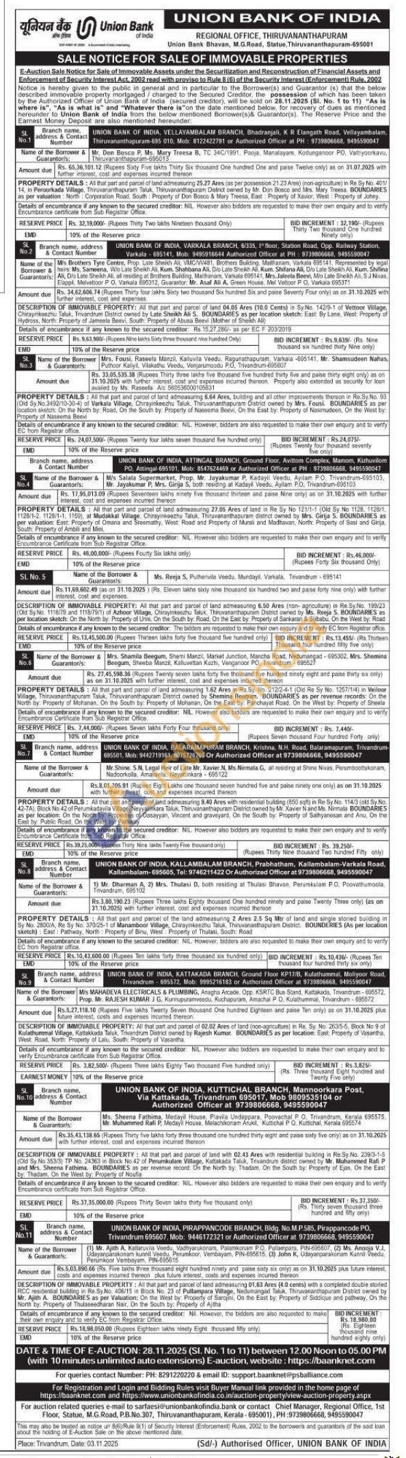Contact Authorized Officer at PH: 9739806668, 9495590047