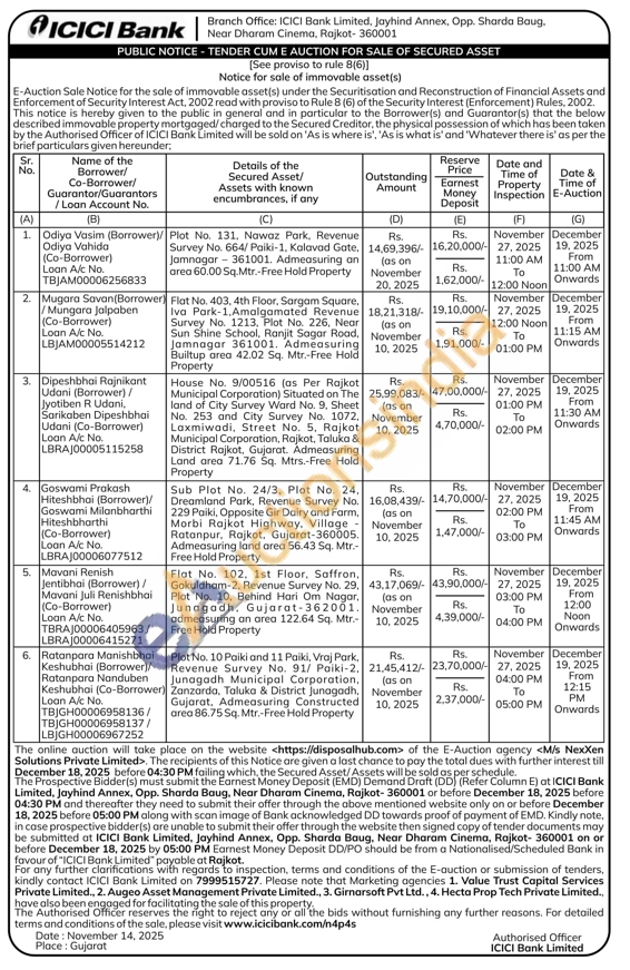 Sub Plot No. 24/3, Plot No. 24, Dreamland Park, Revenue Survey No. 229 Paiki, Opposite Gir Dairy and Farm, Morbi Rajkot Highway. Village Ratanpur, Rajkot, Gujarat-360005. Admeasuring land area 56.43 Sq. Mtr.-Free Hold Property
