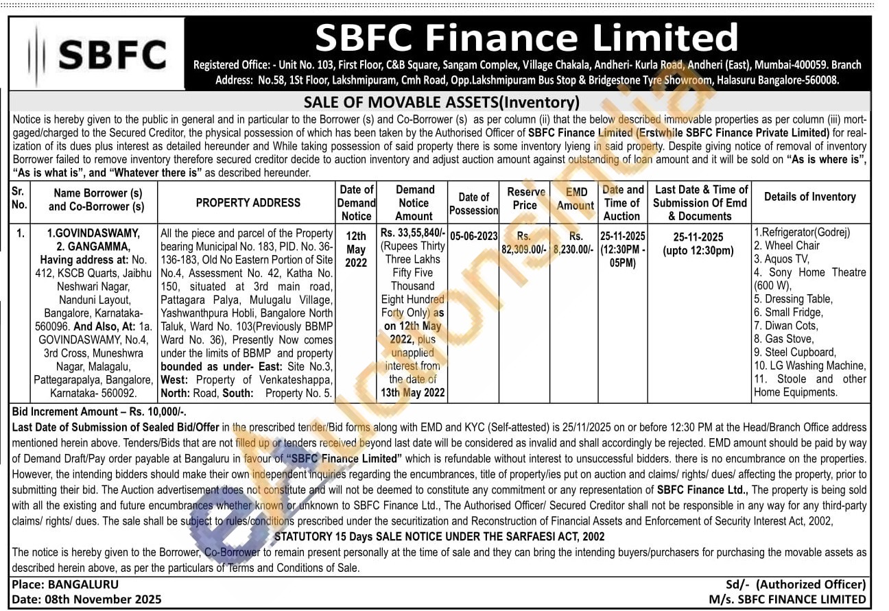All the piece and parcel of the Property bearing Municipal No. 183, PID. No. 36-136-183, Old No Eastern Portion of Site No.4, Assessment No. 42, Katha No. 150, situated at 3rd main road, Pattagara Palya, Mulugalu Village, Yashwanthpura Hobli, Bangalore North Taluk, Ward No. 103 (Previously BBMP Ward No. 36), Presently Now comes under the limits of BBMP and property