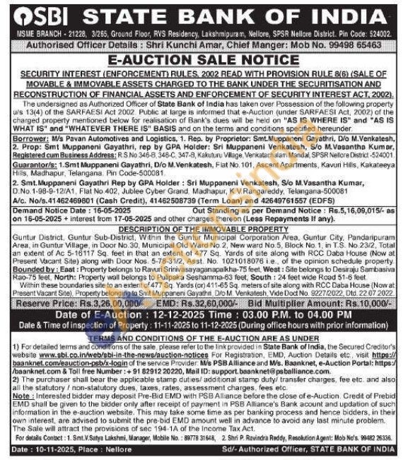 Guntur District, Guntur Sub-District, Within the Guntur Municipal Corporation Area, Guntur City, Pandaripuram Area, in Guntur Village, in Door No 30, Municipal Old Ward No. 2, New ward No. 5, Block No. 1, in T.S. No 23/2, Total an extent of Ac 5-16117 Sq. feet in that an extent of 477 Sq. Yards of site along with RCC Daba House (Now at Present Vacant Site) along with Door Nos. 5-78-31/2, Asst. No. 1021018076 ie, of the opinion schedule property Bounded by: East: Property belongs to Ravuri Srinivasayaganapalkha-75 feet, West: Site belongs to Desiraju Sambasiva Rao-75 feet, North: Property wall belongs to Pulipaka Seshamma-63 feet, South: 24 feet wide Road 51-6 feet Within these boundaries site to an extent of 477 Sq Yards (or) 411-65 Sq. meters of site along with RCC Daba House (Now at Present Vacant Site), Property belonging to Smt Muppaneni Gayathit, Dio M. Venkatesh, Vide Dod No. 9227/2022, Dtd. 22 07 2022