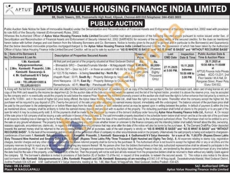 All that part and parcel of the property situated at West Godavari District Bhimadole SRO-DwarakaTirumala Mandai-M.Nagulapalli Village R.S.No. 18/1-Door no 3-81-in these an extent of 146.66 Sq Yandis or 122.75 Sq meters