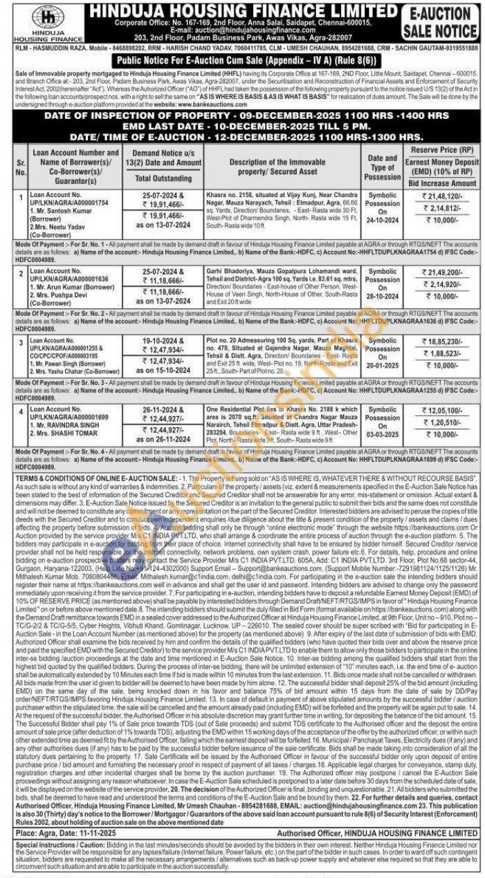 Khasra no. 2158, situated at Vijay Kunj, Near Chandra Nagar, Mauza Narayach, Tehsil: Etmadpur, Agra, 66.66 sq. Yards, Direction Boundaries, East-Rasta wide 30 Ft. West-Plot of Dharmendra Singh, North- Rasta wide 15 Ft. South-Rasta wide 10ft