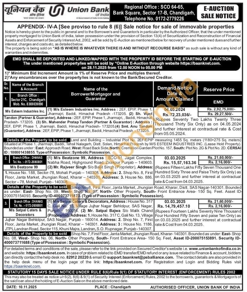 Land and Building Industrial Plot No. 2EF/EPIP measuring 1455 Sq. meters (1180+275 Sq. meters) Situated at Phase 1, Jharmajri, Baddi, Tehsil Nalagarh, Distt. Solan, Himachal Pradesh by M/S ESTEEM INDUSTRIES INC. (Lease Hold Property). Bounded as under: East: Approach Road, West: Road Back Side, North: Cremation Garden/Plot No. 157, South: Plot No. 2G & Plot No. 2D.