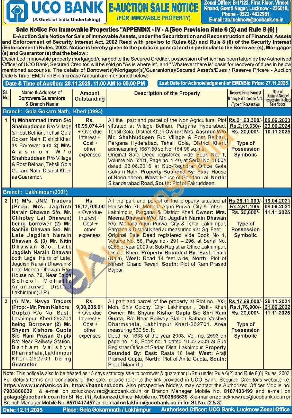 All the part and parcel of the property situated at House No. 79, Mohalla Arjun Purwa, City & Tehsil: -Lakhimpur, Pargana & District Kheri Owner: Mrs. Meena Dhawan W/o. Mr. Jagdish Narain Dhawan R/o. Mohalla Arjun Purwa, City & Tehsil Lakhimpur, Pargana & District Kheri admeasuring 821 Sq. Feet. Original Sale Deed registered vide Book No 1. Volume No. 58, Page no: 291296, at Serial No. 5268 of year 2009 at Sub Registrar Office Lakhimpur, District Kheri. Property Bounded By: East: Drain (Nala), West: Road 14 feet wide, North: Plot of Naresh Chand Tewari, South: Plot of Ram Prasad Bajpai.