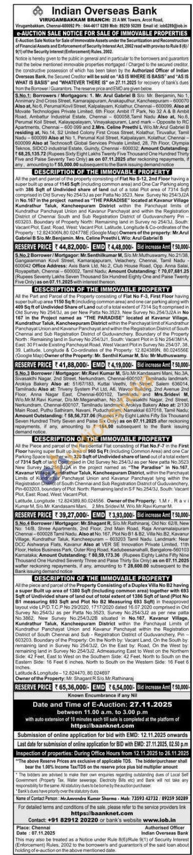 All the piece and parcel of the Property Consisting of a Duplex Villa No B2 having a super Built up area of 1380 Sqft (Including common area) together with 693 Sqft of Undivided share of land out of total extent of 1386 Sqft of land (Plot No 81 measuring 693 Sqft and Plot No B2 Measuring 693 Sqft) in theapproved layout vide LP/D.T.C.P No 29/2020, 1717/2020 dated 16.07.2020 comprised in Old Survey No 254/3J as per Patta No 3523, Survey No. 254/3J2 as per new patta No.3862, New Survey No.254/3J2B situated in No.167, Kavanur Village, Kundrathur Taluk, Kancheepuram District within the Panchayat Limits of Kundrathur Panchayat Union and Kavanur Panchayat within the Registration District of South Chennai and Sub-Registration District of Guduvanchery, Pin-603203. Boundary of the Property: On the North by: Vacant Land. On the South by: remaining land in Survey No 254/3J2. On the East by: Road, On the West by: remaining land in Survey No 254/3J2. Admeasuring East to West on the Northern Side: 42 Feet, East to West on the Southern Side: 42 Feet, North to South on the Eastern Side: 15 Feet 6 inches, North to South on the Western Side: 16 Feet 6 Inches