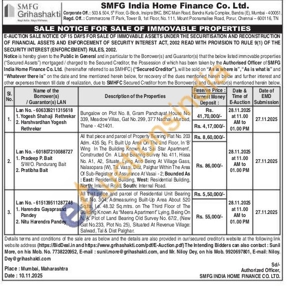 All that piece and parcel of Residential Unit Bearing Flat No. 304, Admeasuring Built-Up Area About 520 Sq.fts. l.e. 48.32 Sq.mtrs. on The Third Floor of The Building Known As "Meera Apartment" Lying, Being On N. A. Plot of Land Bearing Old Survey No. 67/2, (New Gat No.233, Plot No. 25), Situated At Revenue Village: Salwad, Tal & Dist Palghar.