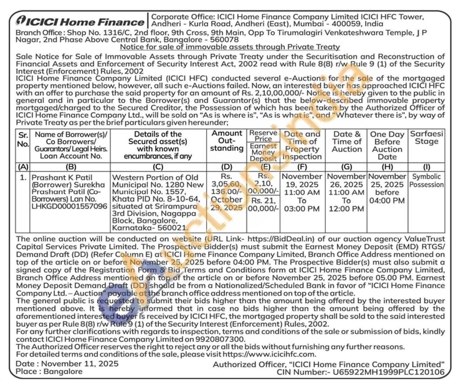 Western Portion of Old Municipal No. 1280 New Municipal No. 1557, Khata PID No. 8-10-64, situated at Srirampura 3rd Division, Nagappa Block, Bangalore, Karnataka-560021