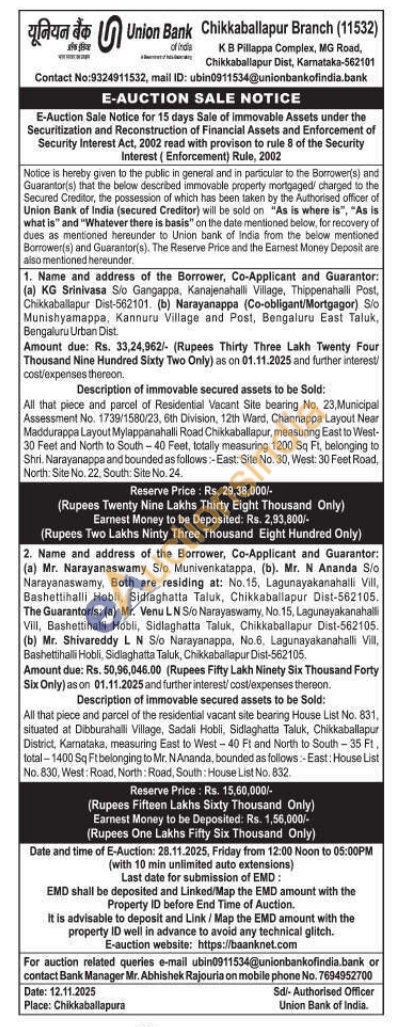 2) All that piece and parcel of the residential vacant site bearing House List No. 831, situated at Dibburahalli Village, Sadali Hobli, Sidlaghatta Taluk, Chikkaballapur District, Karnataka, measuring East to West-40 Ft and North to South-35 Ft. total-1400 Sq Ft belonging to Mr. NAnanda, bounded as follows:-East: House List No. 830, West Road, North: Road, South: House List No. 832