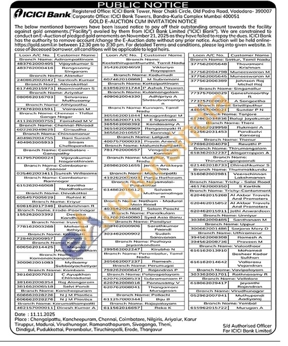 ICICI Bank Gold Auctions Auction in Chengalpattu