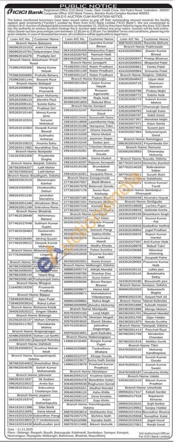 ICICI Bank Gold Auctions Auction in Bargarh