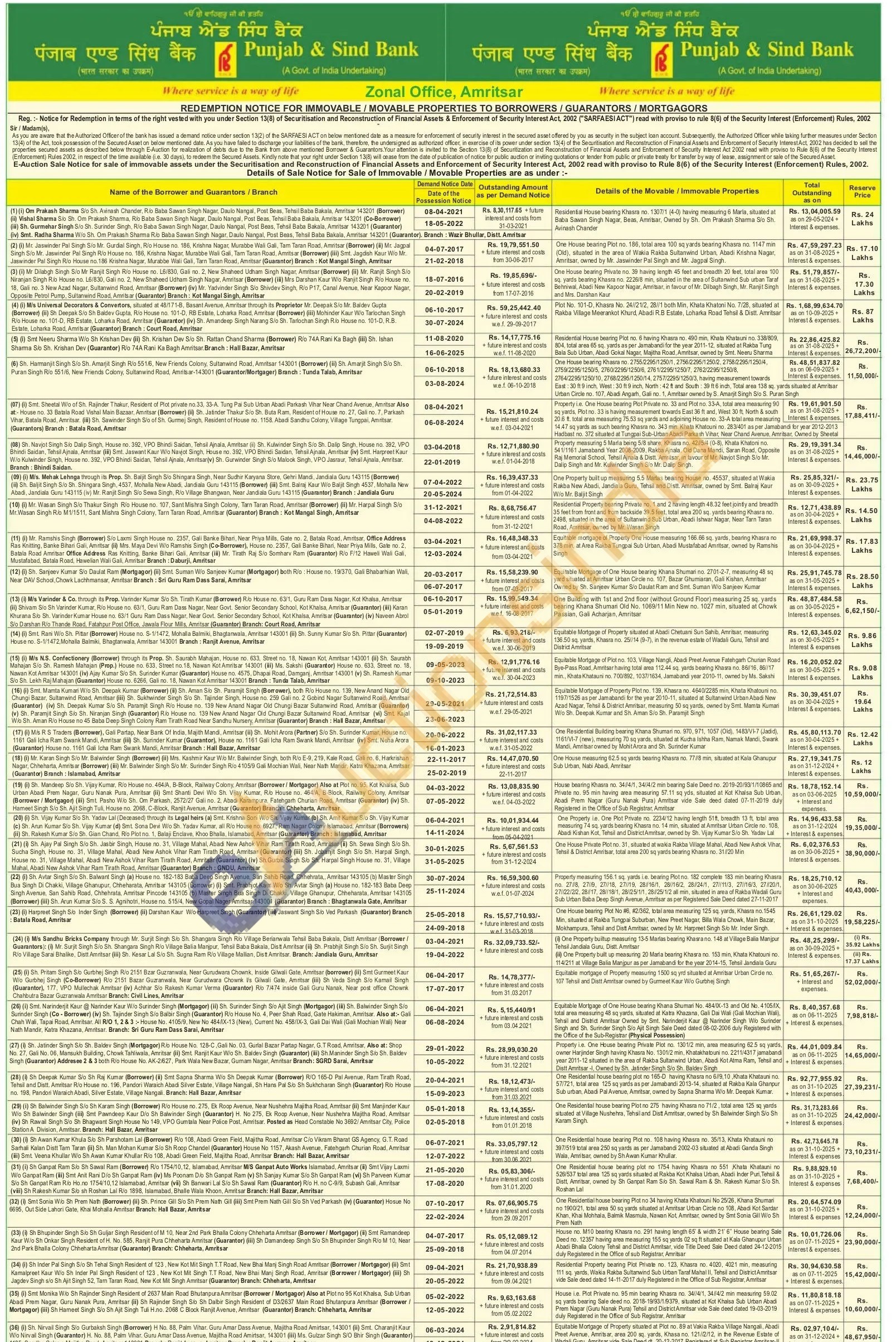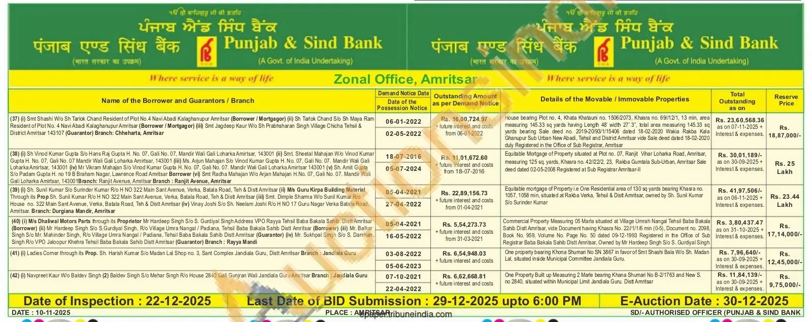 One Residential house bearing Plot no 275 having Khasra no 71/2, total area 125 sq yards situated at Village Nushehra, Tehsil and Distt Amritsar, owned by Sh Balwinder Singh S'o Sh Karam Singh.