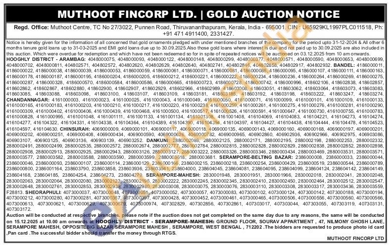 Muthoot Fincorp Ltd Gold Auctions Auction in Thiruvananthapuram