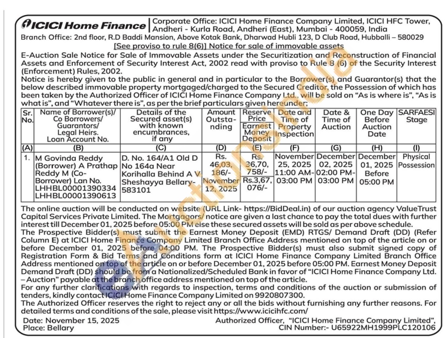 D. No. 164/A1 Old D No 164a Near Korihalla Behind A V Sheshayya Bellary-583101