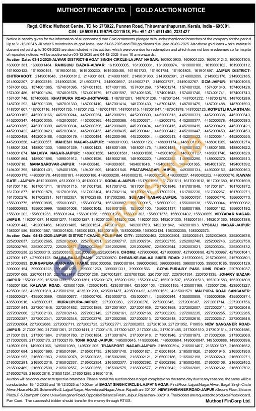 Muthoot Fincorp Ltd Gold Auctions Auction in Thiruvananthapuram
