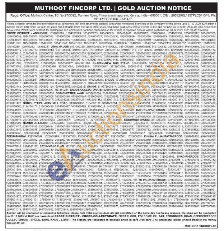 Muthoot Fincorp Ltd Gold Auctions Auction in Thiruvananthapuram