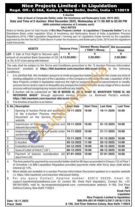 Sale of First Right to Recover upto amount of encashed Bank Guarantee of CD e. Rs. 8.97 crore along with Interest