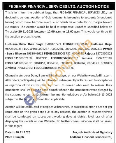 Fedbank Financial Services Ltd Gold Auctions Auction in Punjab