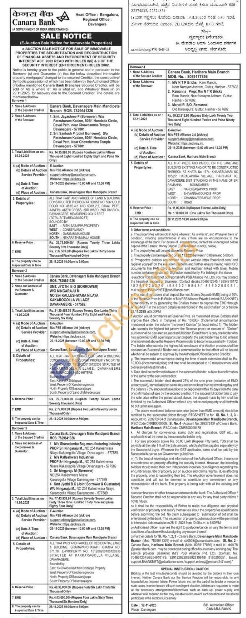 3) ALL THAT PART AND PARCEL OF RESIDENTIAL LAND & BUILDING, GRAMAPANCHAYATH KHATHA NO 371/18, E-PROPERTY NO 151200200100120236 SITAUTED AT KAKKARAGOLLA VILLAGE. DAVANAGERE. Bounded by East: 13.00 wide road then Siddappa Property West Property Of Kenchanagowdru North: Property Of Basavarajappa South: Property Of Basavarajappa