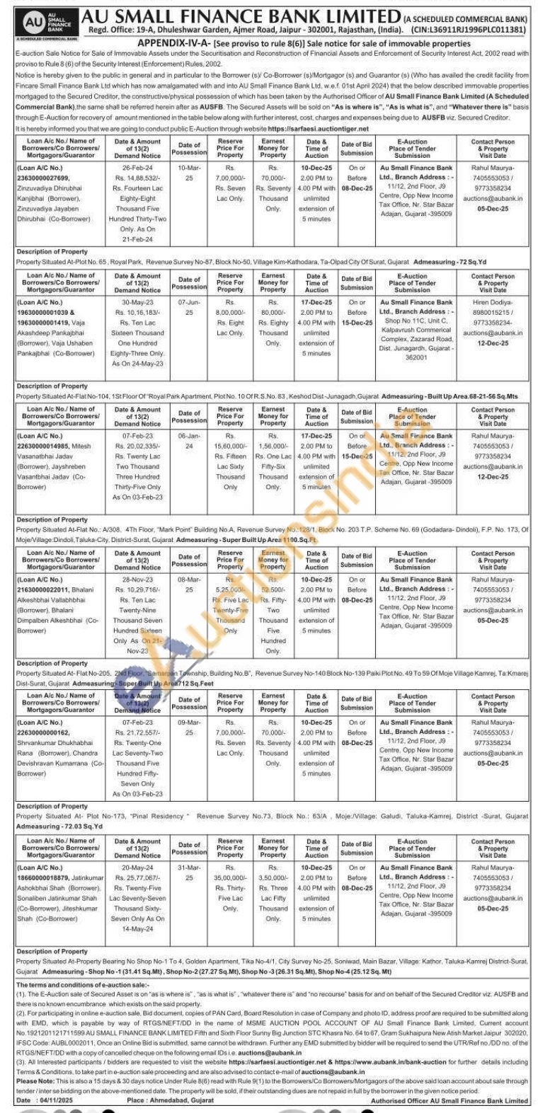 Property Situated At-Flat No.: A/308. 4Th Floor, "Mark Point Building No.A. Revenue Survey No.: 128/1, Block No. 203 T.P. Scheme No. 69 (Godadara-Dindoli), F.P. No. 173, Of Moje/Village: Dindoll, Taluka-City, District-Surat, Gujarat Admeasuring-Super Built Up Area 1100.Sq.Ft