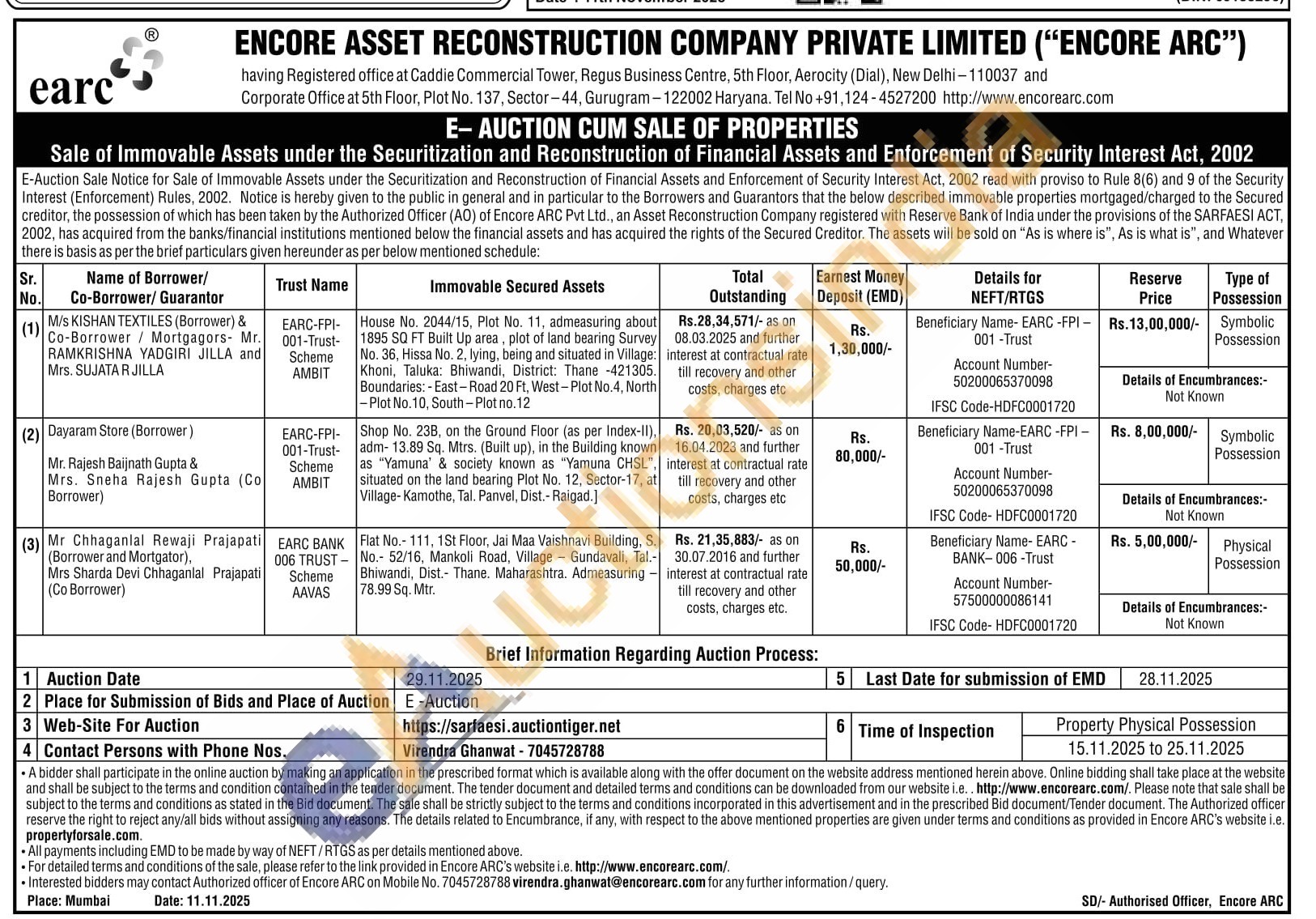House No. 2044/15, Plot No. 11, admeasuring about 1895 SQ FT Built Up area, plot of land bearing Survey No. 36, Hissa No. 2, lying, being and situated in Village: Khoni, Taluka: Bhiwandi, District: Thane -421305. Boundaries:-East-Road 20 Ft, West-Plot No.4, North -Plot No. 10. South-Plot no.12
