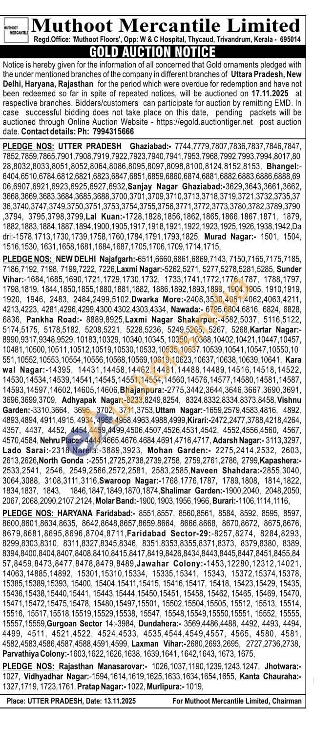 Muthoot Mercantile Limited Gold Auctions Auction in Ghaziabad
