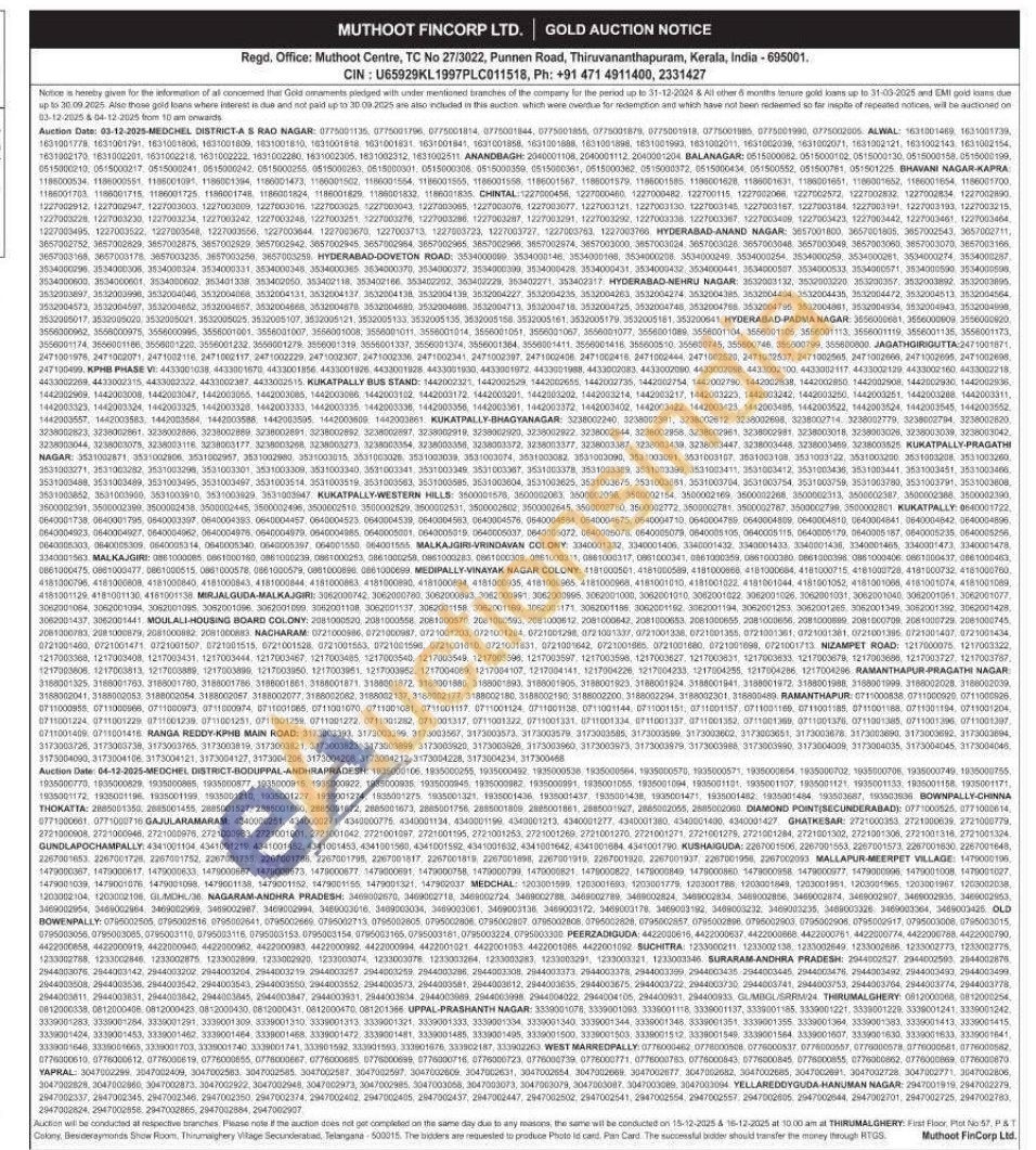 Muthoot Fincorp Ltd Gold Auctions Auction in Thiruvananthapuram