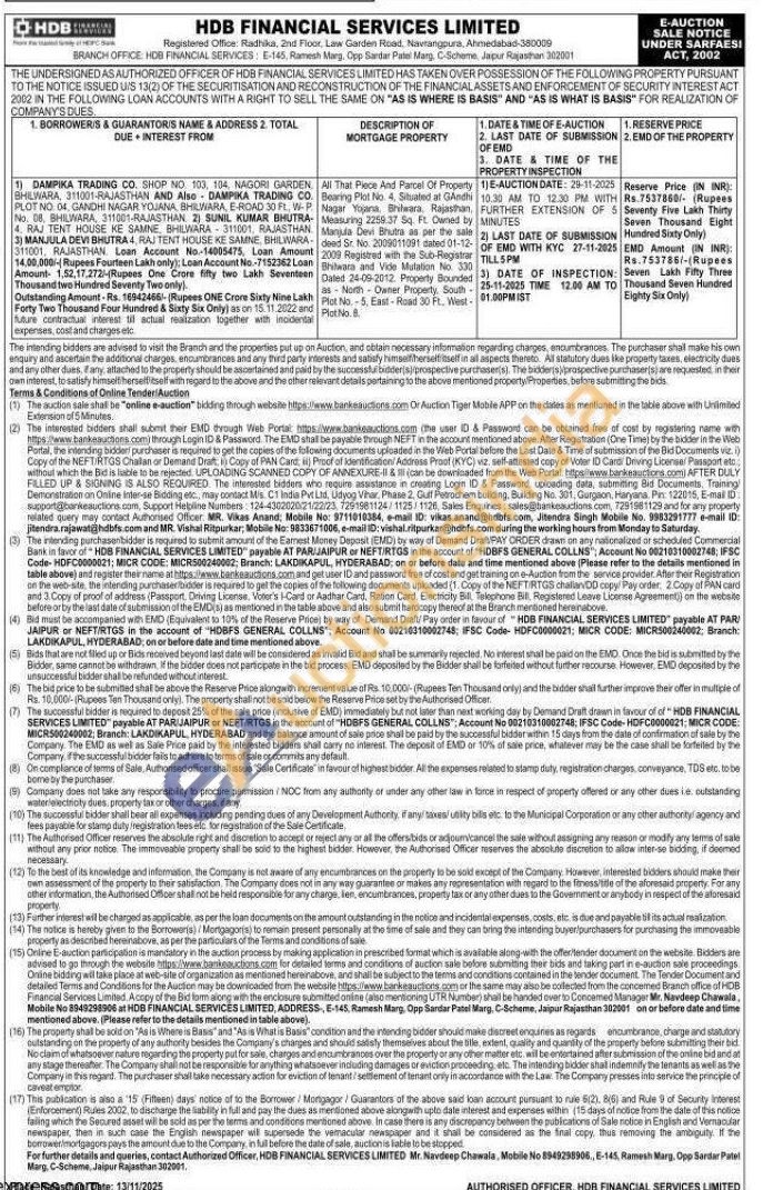 All That Piece And Parcel Of Property Bearing Plot No. 4, Situated at Gaedhi Nagar Toana Shiwara Rajasthan Measu Measuring 2258:37 59. PL. Owned by Manula Devi Bhutra as per the sale 2009 Registred with the Sub-Registrar deed St No. 2000011091 01-12 Bhilwara and Vide Mutation No 330 Dated 24-06-2012. Property Bounded Plot No.-5. East-Road 50 Ft. as Noth-Owner Property PlatiNa