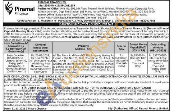 All The Piece And Parcel Of The Property Having An Extent Flat No 1/6, First Floor, Door No. 1 & 2, Ts No. 65/80, RS No. 65/89, Block No. 5, Aspiran Garden 1st Street, Kilpauk Near By Bhavan Shchool & Behind To lob Bank Chennai Tamil Nadu, 600010 Boundaries As North Road South Canal East Road West-Building