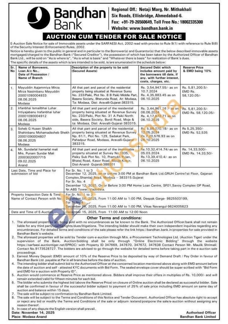2)All that part and parcel of the residential property being situated at Revenue Survey No. 233/Paiki, Plot No. 31 A Paiki North side, Basera Society, Bordi Road, Moje & ta: Modasa, Dist: Aravalli-Gujarat-383315