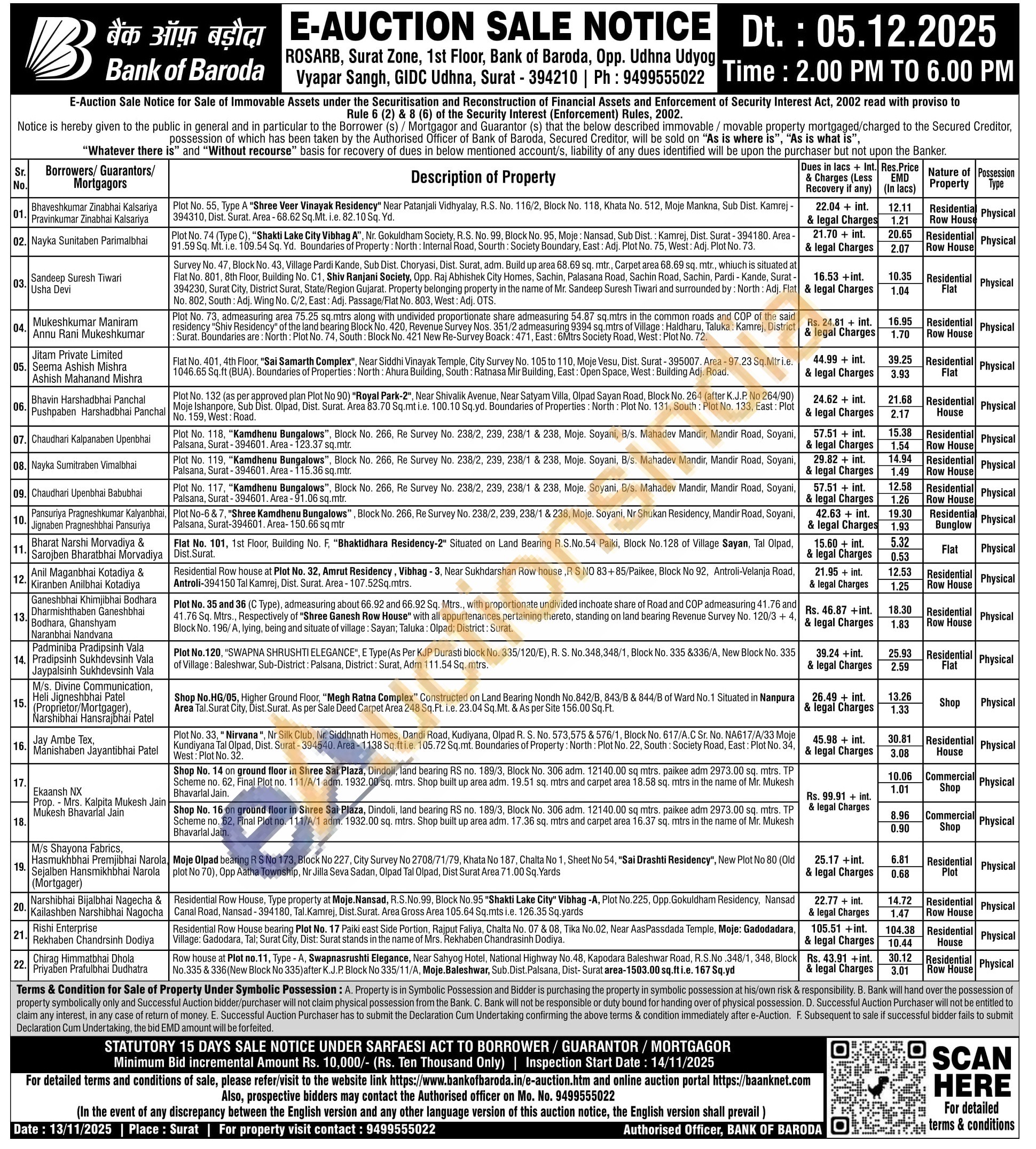 Contact the Authorised officer on Mo. No. 9499555022