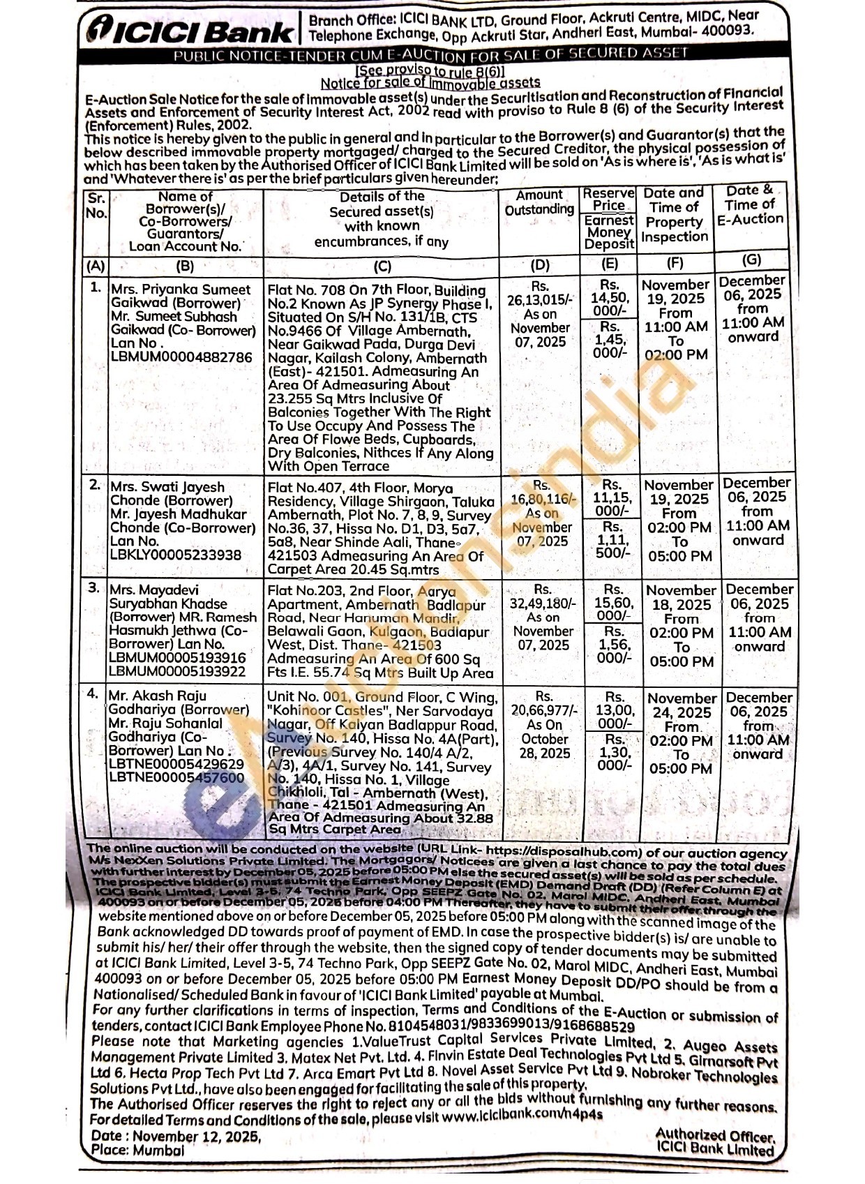Flat No. 708 On 7th Floor, Building No.2 Known As JP Synergy Phase 1, Situated On S/H No. 131/1B, CTS No.9466 Of Village Ambernath, Near Gaikwad Pada, Durga Devi Nagar, Kailash Colony, Ambernath (East)-421501. Admeasuring An Area Of Admeasuring About 23.255 Sq Mtrs Inclusive Of Balconies Together With The Right To Use Occupy And Possess The Area Of Flowe Beds, Cupboards, Dry Balconies, Nithces If Any Along With Open Terrace