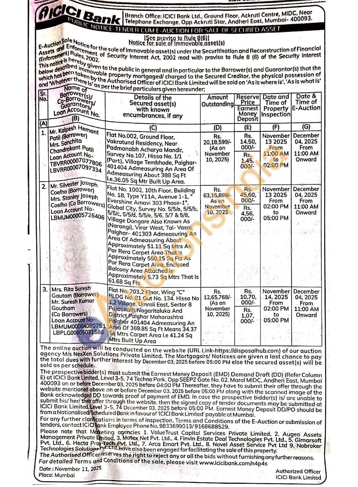 Flat No.002. Ground Floor. Vakratund Residency, Near Padmanabh Acharya Mandir Survey No. 107, Hissa No. 1/1 (Part), Village Tembhode, Palghar 401404 Admeasuring An Area Of Admeasuring About 388 Sq Ft 1.e.36.05 Sq Mtr Built Up Area