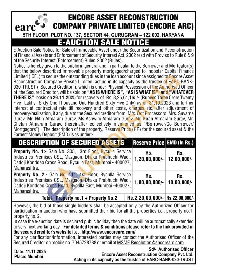 Property No. 1: Gala No. 305, 3rd Floor, Byculla Service Industries Premises CSL, Mazgaon, Dhaku Prabhuchi Wadi, Dadoji Konddeo Cross Road, Byculla East, Mumbai - 400027, Maharashtra