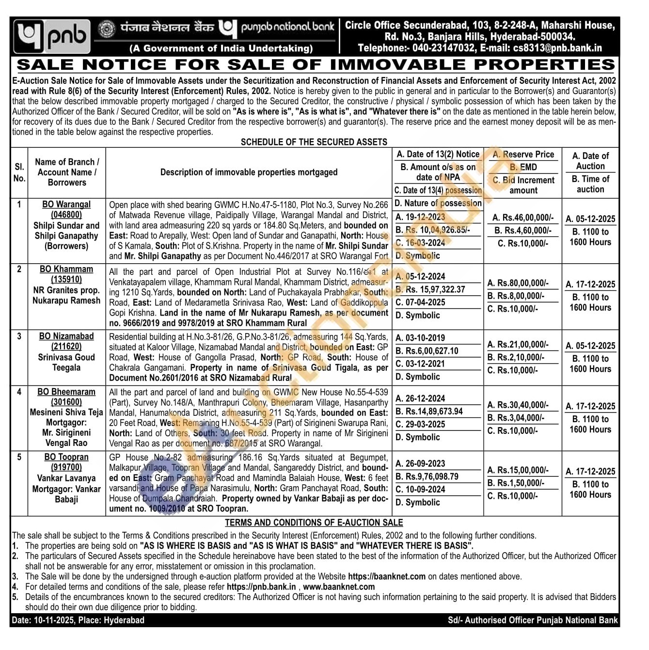 All the part and parcel of Open Industrial Plot at Survey No.116/1 at Venkatayapalem village, Khammam Rural Mandal, Khammam District, admeasur-ing 1210 Sq. Yards, bounded on North: Land of Puchakayala Prabhakar, South: Road, East: Land of Medarametla Srinivasa Rao, West: Land of Gaddikoppula Gopi Krishna. Land in the name of Mr Nukarapu Ramesh, as per document no. 9666/2019 and 9978/2019 at SRO Khammam Rural