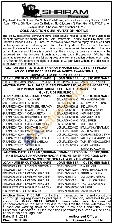Shriram Finance Ltd Gold Auctions Auction in Visakhapatnam