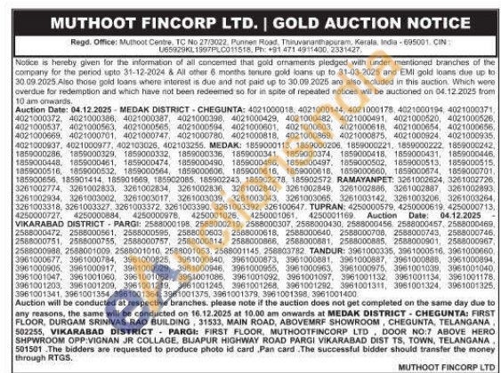 Muthoot Fincorp Ltd Gold Auctions Auction in Medak