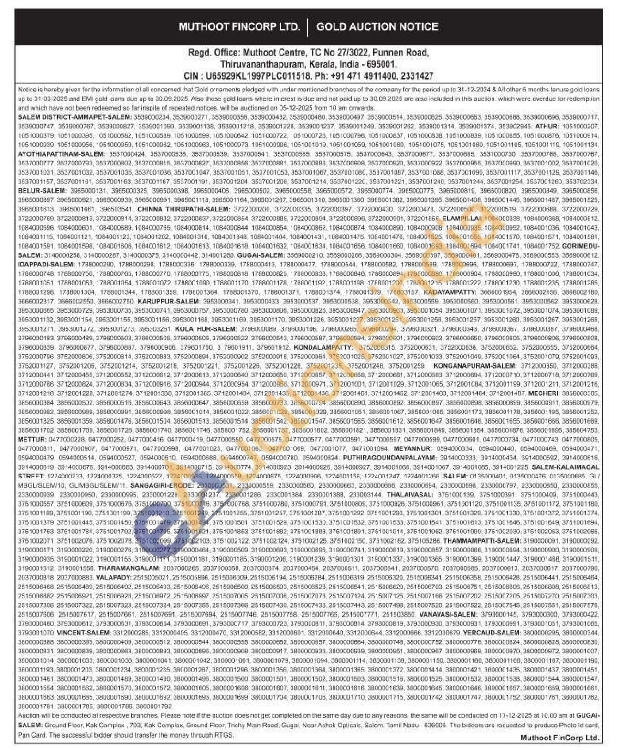 Muthoot Fincorp Ltd Gold Auctions Auction in Thiruvananthapuram