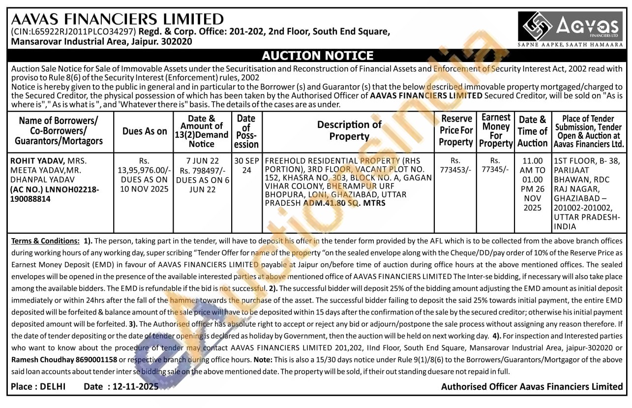 FREEHOLD RESIDENTIAL PROPERTY (RHS PORTION), 3RD FLOOR, VACANT PLOT NO. 152, KHASRA NO. 303, BLOCK NO. A, GAGAN VIHAR COLONY, BHERAMPUR URF BHOPURA, LONI, GHAZIABAD, UTTAR PRADESH ADM.41.80 SQ. MTRS