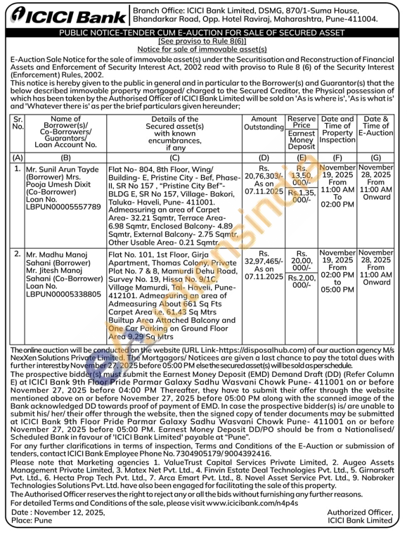 Flat No. 101, 1st Floor, Girja Apartment, Thomas Colony, Private Plot No. 7 & 8, Mamurdi Dehu Road, Survey No. 19, Hissa No. 9/1C, Village Mamurdi, Tal- Haveli, Pune-412101. Admeasuring an area of Admeasuring About 661 Sq Fts Carpet Area i.e. 61.43 Sq Mtrs Builtup Area Attached Balcony and One Car Parking on Ground Floor Area 9.29 Sq Mtrs