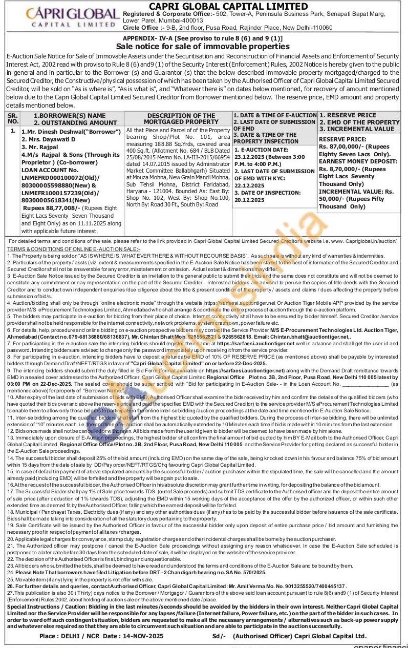 contact Authorised Officer Mr. Amit Verma Mo. No. 9013255520/7400445137.