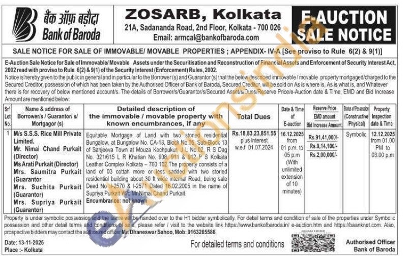 Contact authorized officer Mr. Dhaneswar Sahoo, Mob: 9163265586