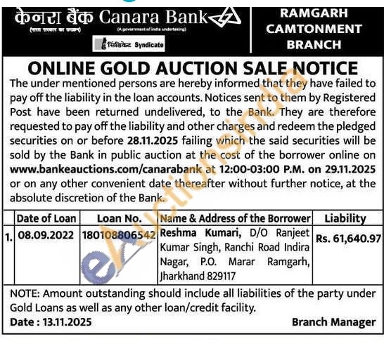 Canara Bank Gold Auctions Auction in Mumbai