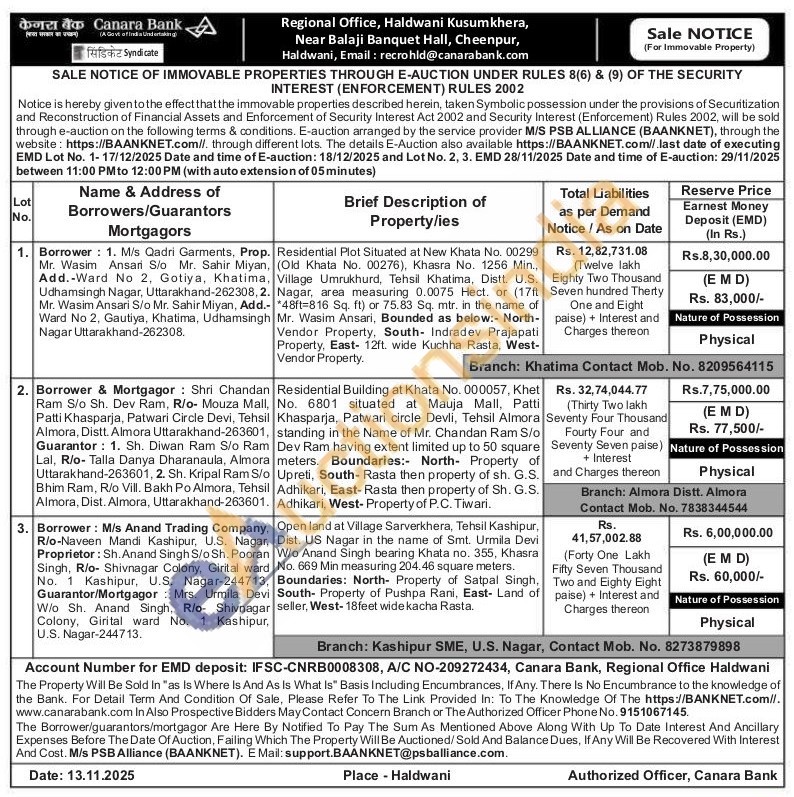Contact Branch: Kashipur SME, U.S. Nagar, Contact Mob. No. 8273879898