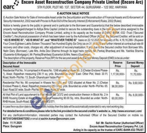 Residential Plot No. 66 comprised in Khasra No. 1251 and 1252 situated at Alwar No. 2 (Chetan Enclave Phase-1), Alwar, Rajasthan measuring 283.33 sq, yrds. Bounded as under: North-Plot No. 65. East-Road 30 wide, South-Plot No. 67, West-Road 30 wide.