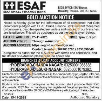 ESAF SMALL FINANCE BANK Gold Auctions Auction in Hyderabad