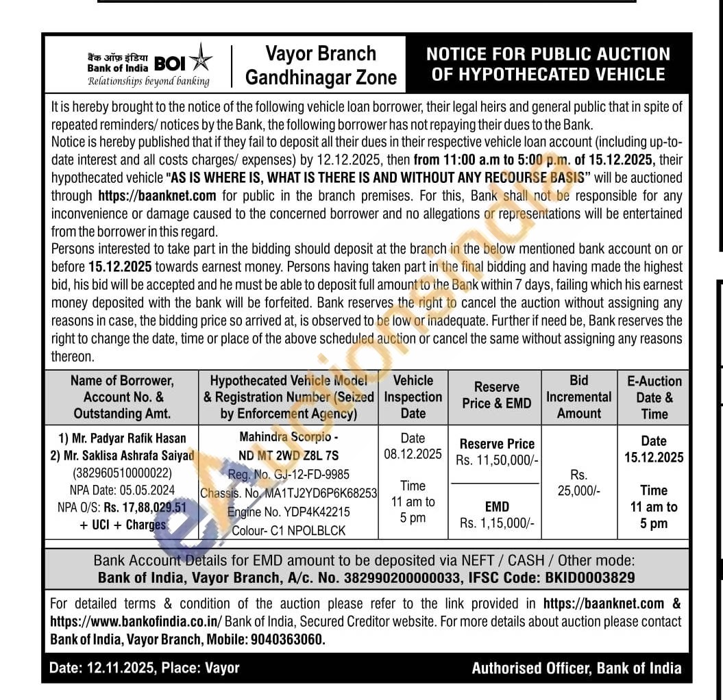 Mahindra Scorpio - ND MT 2WD Z8L 7S Reg. No. GJ-12-FD-9985 Chassis. No. MA1TJ2YD6P6K68253 Engine No. YDP4K42215 Colour- C1 NPOLBLCK