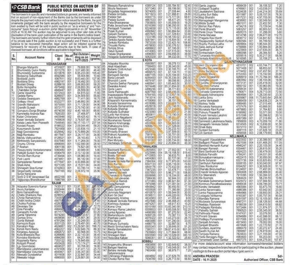 CSB Bank Gold Auctions Auction in Vizianagaram