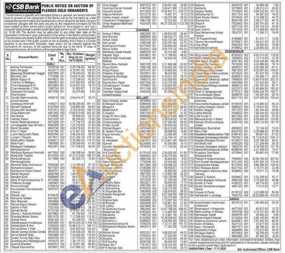 CSB Bank Gold Auctions Auction in Hubballi